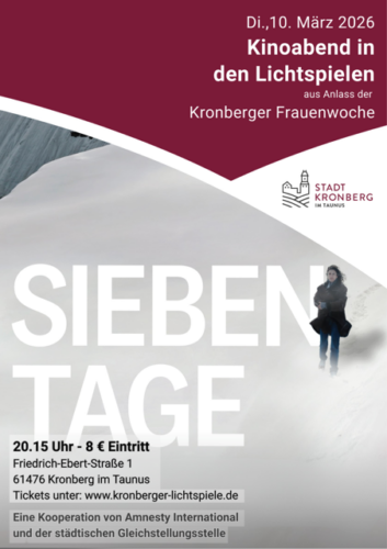 Die Ortsgruppe Kronberg-Königstein zeigt in Kooperation mit der Gleichstellungsbeauftagten der Stadt Kronberg und den Kronberger Lichtspielen den Film „Sieben Tage“ :