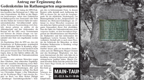 (Kronberger Bote 13.3.2026, Gedenkstein) (Bilder zum Vergrößern anklicken)